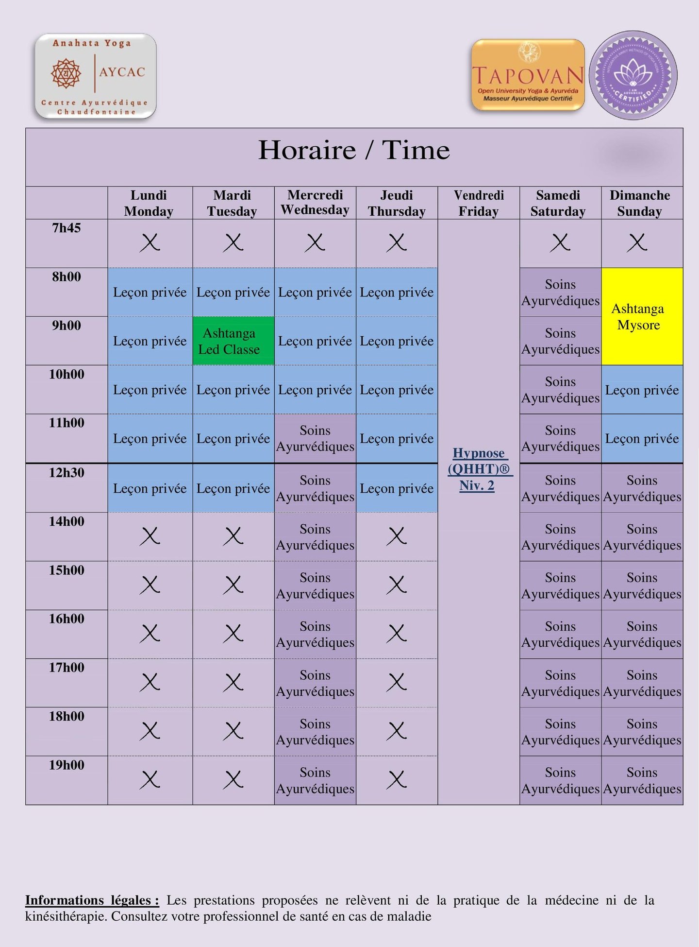Informations légales : Les prestations proposées ne relèvent ni de la pratique de la médecine ni de la kinésithérapie. Consultez votre professionnel de santé en cas de maladie.